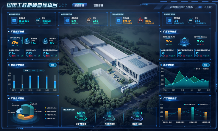 利用物聯(lián)網技術與行業(yè)碳排放因子庫,國藥工程能碳管理平臺可快速完成園區(qū)碳排放基線的精準摸底,識別主要排放源與減碳潛力點,為企業(yè)制定科學減碳路徑提供可靠依據。