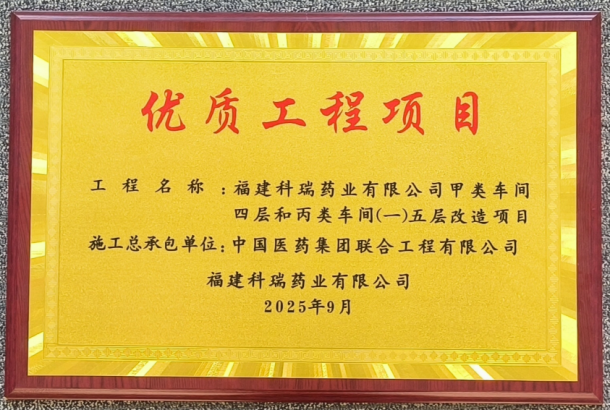 10月28日,由國(guó)藥工程承建的福建科瑞藥業(yè)江陰廠區(qū)項(xiàng)目順利通過(guò)竣工驗(yàn)收。福建科瑞藥業(yè)對(duì)國(guó)藥工程在項(xiàng)目全周期中展現(xiàn)的專業(yè)能力與精細(xì)管理給予高度認(rèn)可,并現(xiàn)場(chǎng)頒發(fā)“優(yōu)質(zhì)工程項(xiàng)目”榮譽(yù)證書及獎(jiǎng)牌,充分肯定了項(xiàng)目在設(shè)計(jì)優(yōu)化、施工質(zhì)量與過(guò)程管控方面的卓越表現(xiàn)。